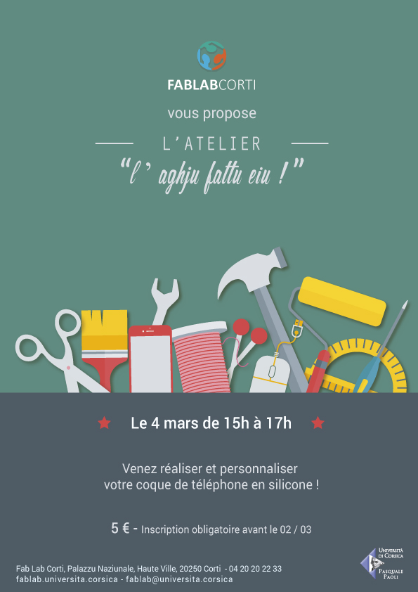 5€ - Inscription obligatoire avant le 02 / 03 (fablab@universita.corsica / 04 20 20 22 33)